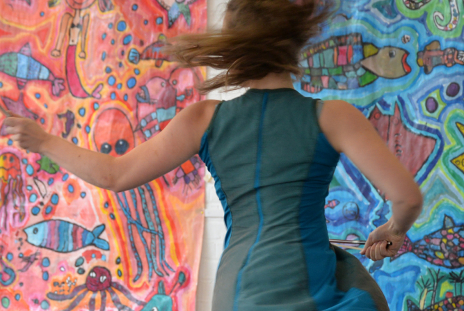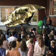 Myriam Dooge et sa compagnie se sont inspirées de la nature, à la fois florale et humaine, pour faire naître ce spectacle coloré, poétique et sensible. Et c’est cette même inspiration qui a guidé le travail d’initiation avec les écoliers. À travers différents ateliers, les enfants se sont essayés à la langue des signes, ont manipulé différents accessoires à commencer par de gros ballons et ont travaillé les sauts.