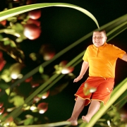 jaunes. Les balles balles, j’ai adoré me mettre dessus. La danse avec des bâches c’était magique et