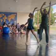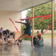 Lors de cette représentation spéciale de la proposition À ciel ouvert !, la Compagnie Myriam Dooge invitait à un spectacle en quatre parties, entrecoupé de balades dans le village. Un événement original très apprécié comme le thème du spectacle : la mise en avant du parcours de jeunes sportives du monde entier.